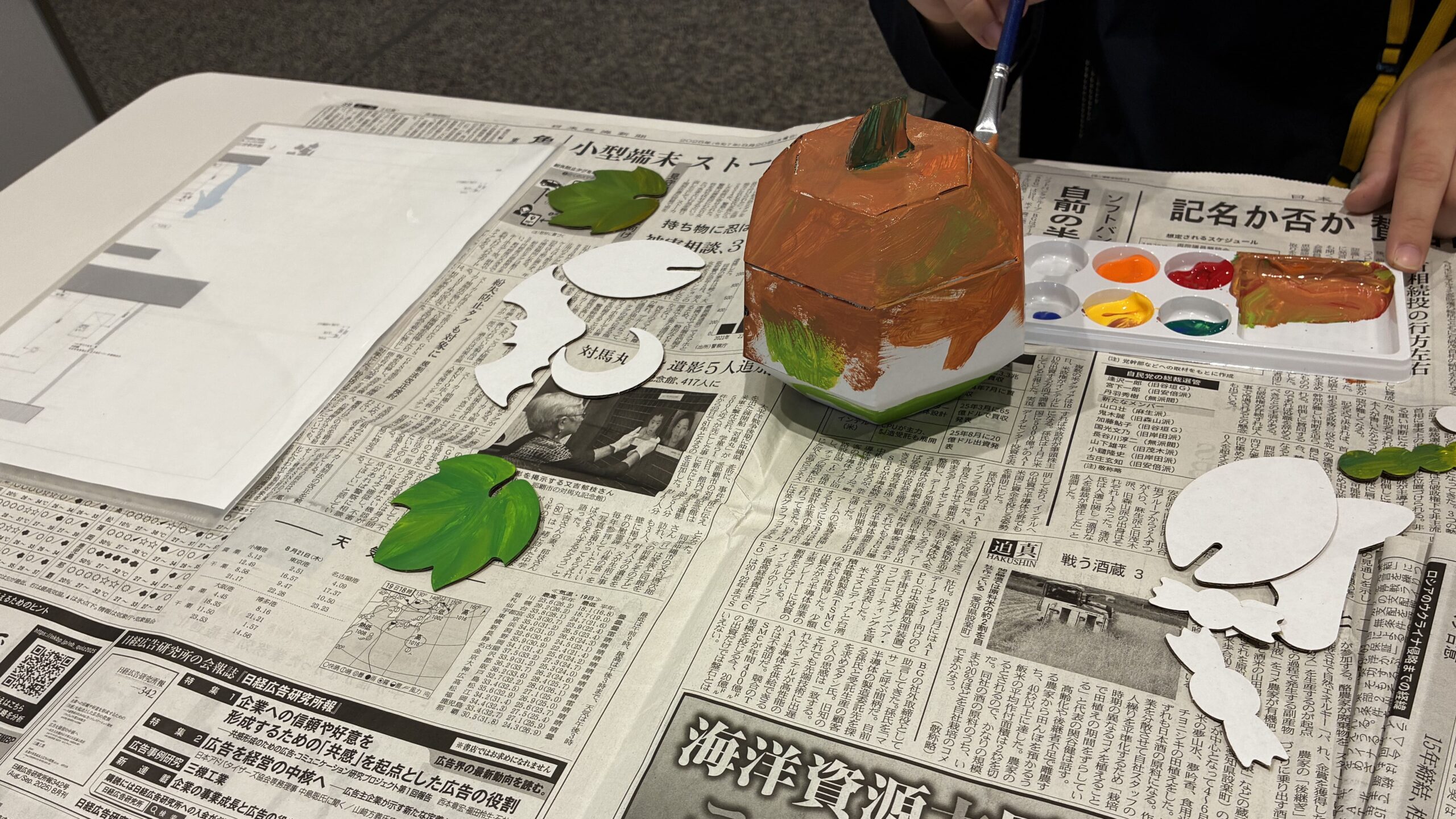 「かぼちゃのお菓子入れ」のサンプル制作にも参加していただきました。